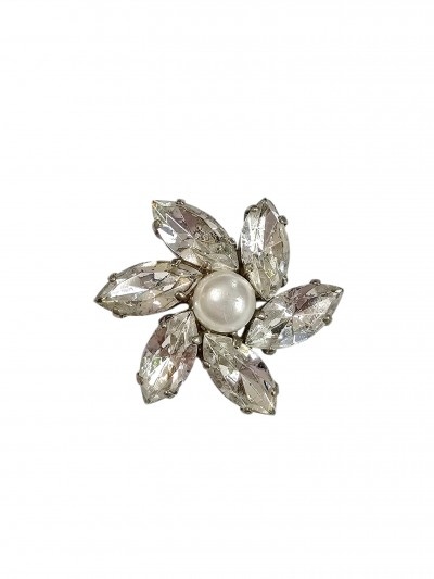 metal comun argintiu, cristale si perla falsa, lungime 3.4 cm, conditie foarte buna
