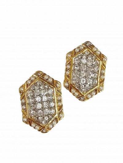 metal placat cu aur, cristale si perle false, lungime 3.1 cm, conditie excelenta