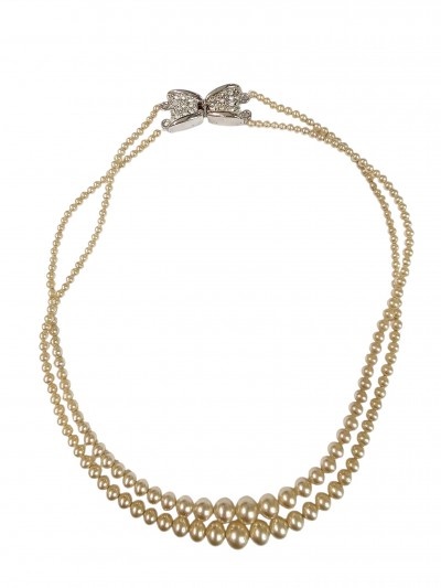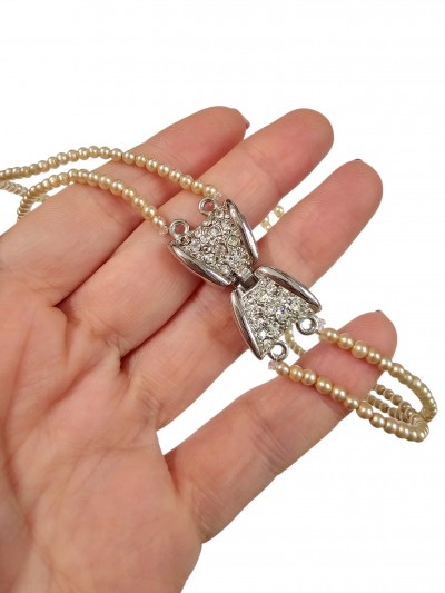 Colier vintage, inchizatoare bijuterie si perle din sticla