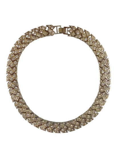 metal comun auriu si cristale, lungime 39.5 cm, conditie buna (metal decolorat - nu deranjeaza)