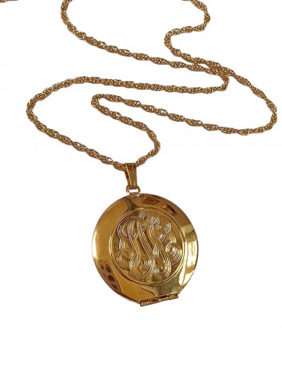 metal placat cu aur, lungime pandant 4.1 cm, lungime lant 60 cm, conditie excelenta