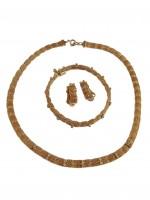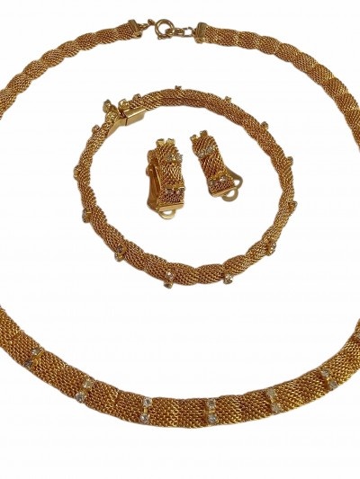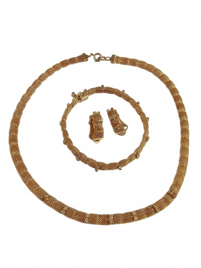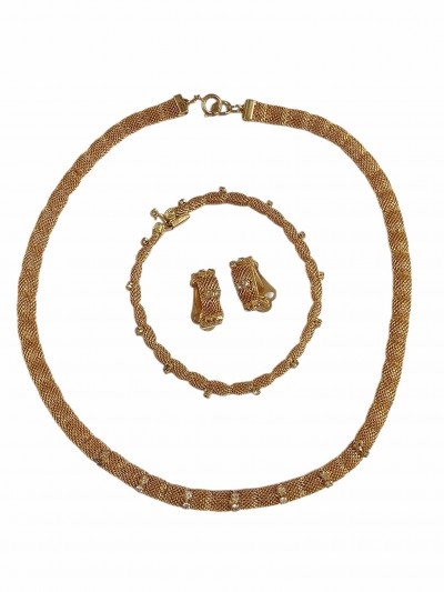 Set vintage, colier, bratara si cercei cu clips, placate cu aur