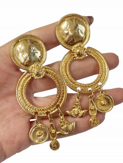 Cercei vintage, XXL, cu clips, placati cu aur, colectie rediscovered by Susan Caplan
