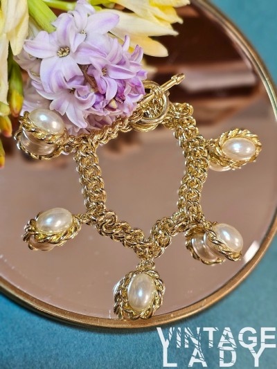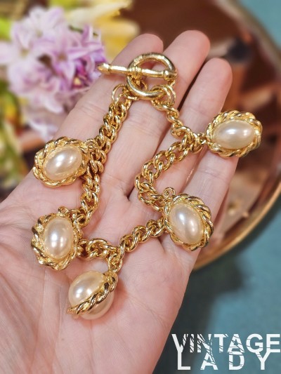 metal suflat cu aur si perle false, lungime 19 cm, conditie excelenta