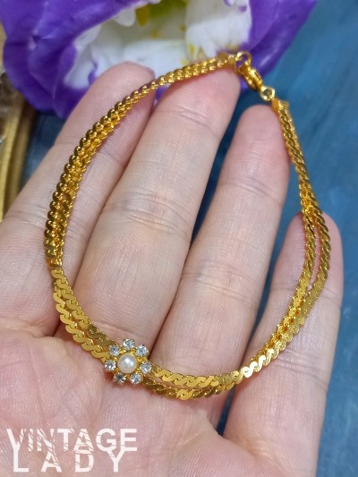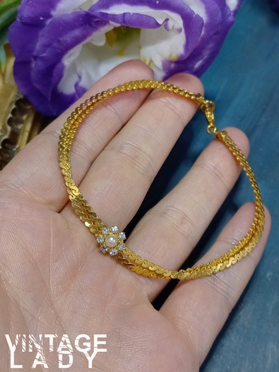 metal suflat cu aur , cristale si perla falsa, lungime 18 cm, conditie excelenta