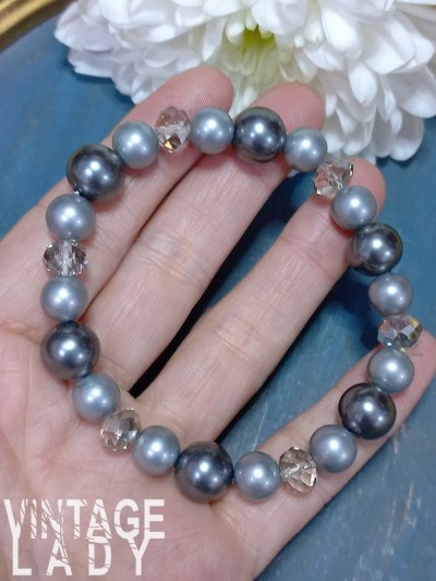 Bratara vintage, perle gri
