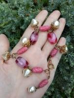 metal comun auriu, perle false si sticla, lungime 21 cm, conditie foarte buna