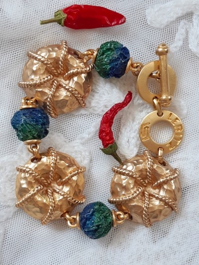metal suflat cu aur si rasina, lungime 22 cm, semnata, conditie excelenta