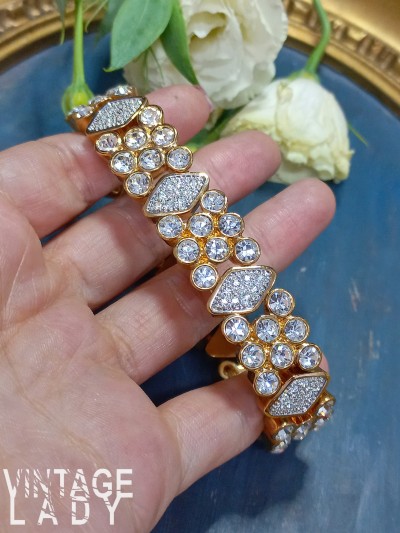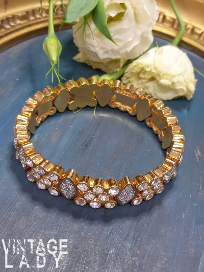 metal placat cu aur si cristale, elastica, latime 1.5 cm, lungime 21.5 cm, conditie excelenta
