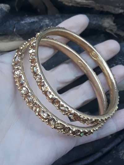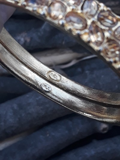 metal auriu si cristale, diametru 6.1 cm, semnate, conditie foarte buna