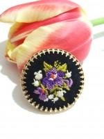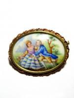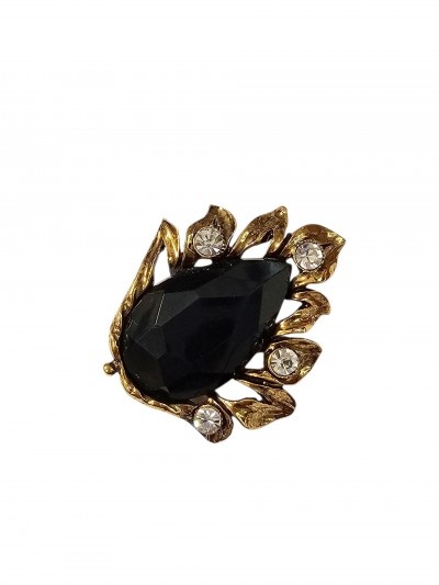 metal placat cu aur, cristale si cristal fals negru, 4.6/3.9 cm, conditie excelenta