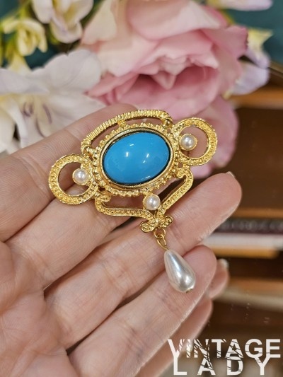 metal suflat cu aur, rasina si perle false, lungime 5.1 cm, conditie excelenta