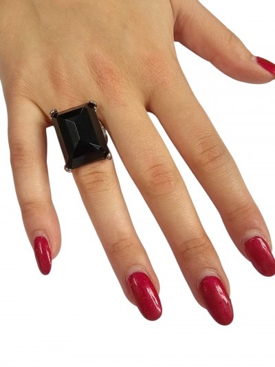 metal comun argintiu si cristal fals negru XL, marimea 52, conditie foarte buna