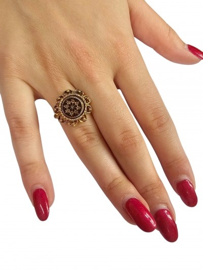 metal suflat cu aur si sticla, marime reglabila, conditie foarte buna