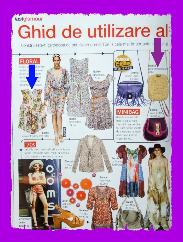 rochie retro si geanta vintage www.vintagelady.ro in nr. din martie al revistei Glamour