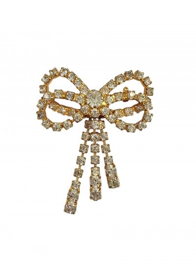 metal comun auriu si cristale, lungime 5.5 cm, conditie foarte buna