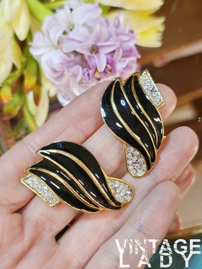 metal comun auriu, email negru si cristale, lungime 3 cm, conditie excelenta